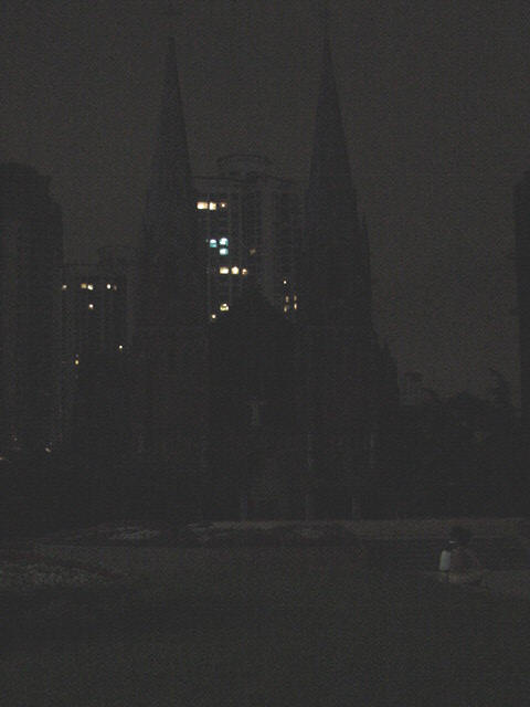 Left: A Catholic church in Shanghai--the night