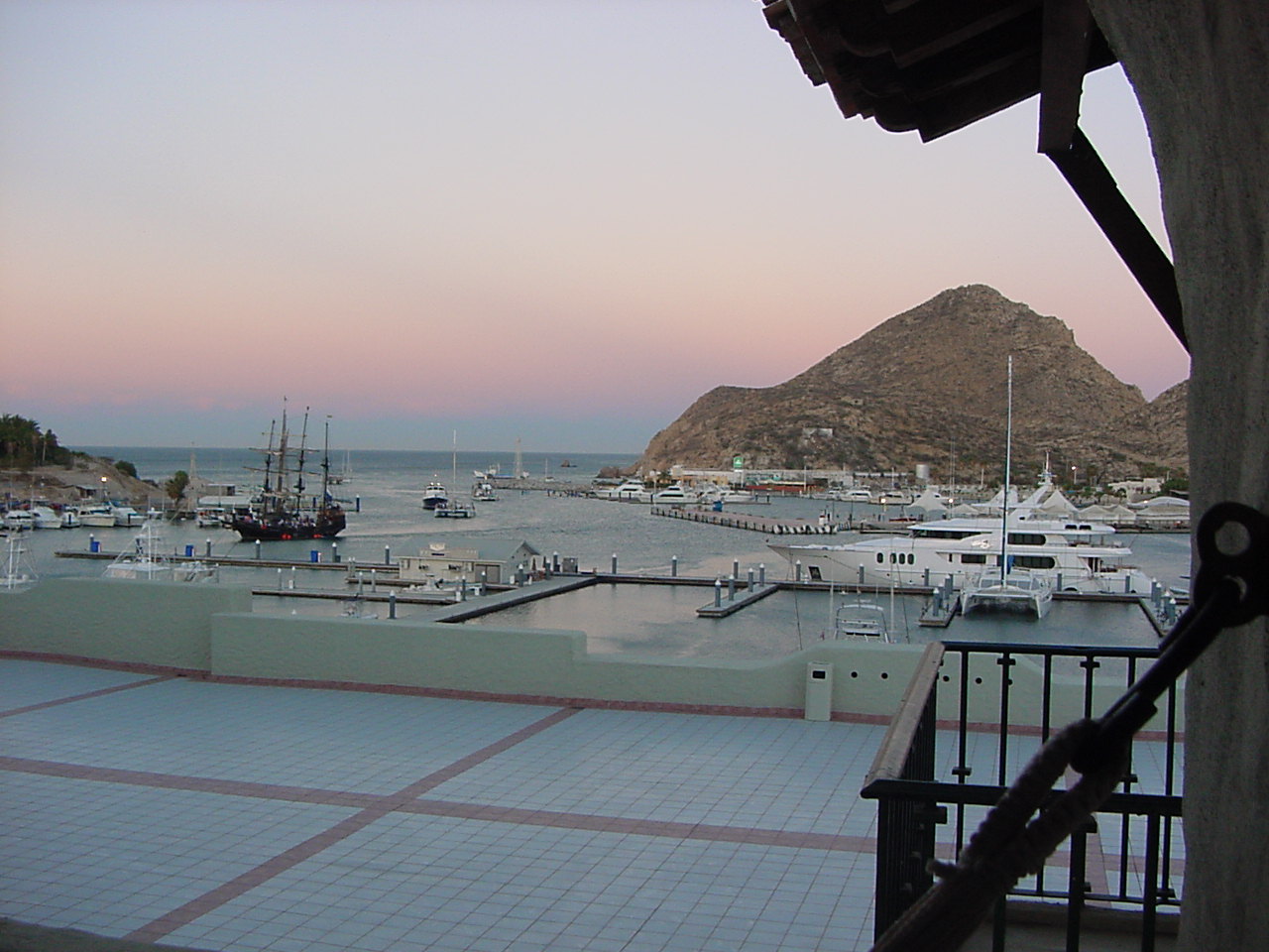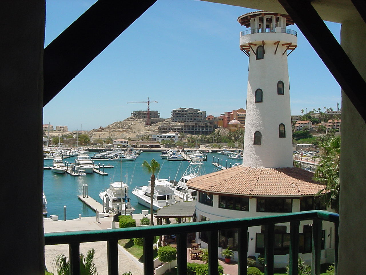 "Can you get free the weekend of..." She says "A surprise!" The Surprise was a TRIP TO CABO SAN LUCAS!!! This was a totally, totally, totally awesome trip!!! The pictures above, and the pictures below are all of our hotel in Cabo San Lucas. Some of them are the view from out of our window, which looked right at the harbor. So cool! It was so great! We could hear the Cabo ocean gently lapping in the harbor, and watch the boats come in every evening. We didn't really get up